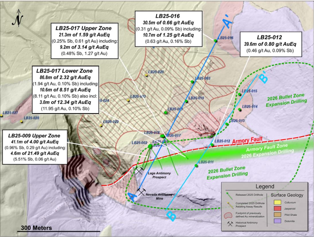 Home Stock NevGold Drills 8.51 g/t Oxide AuEq Over 10.6 MetersWithin 2.32 g/t Oxide AuEq Over 86.8 Meters ; Discovers High-Grade Oxide Gold-Antimony “Armory Fault” Structure At Bullet Zone